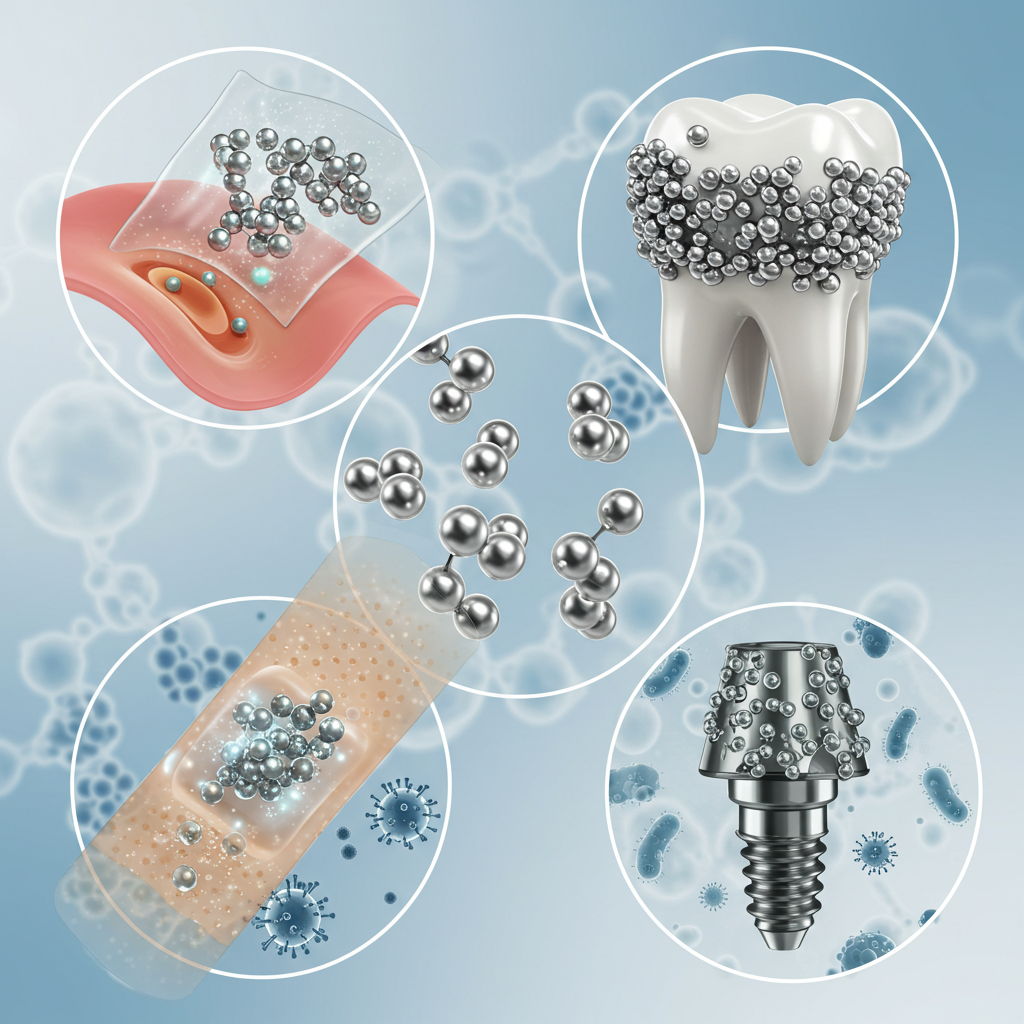 Les nanoparticules d'argent AgNrs évolutionnent le traitement traditionnel des plaies . Non seulement elles préviennent l'infection, mais elles accélèrent également la régénération tissulaire et la cicatrisation. Elles améliorent le processus naturel de cicatrisation en stimulant les facteurs de croissance clés qui favorisent la régénération cutanée, ce qui accélère la guérison et améliore les résultats esthétiques. Ces pansements avancés sont particulièrement utiles pour le traitement des plaies chroniques et des brûlures, ainsi que des ulcères diabétiques , où les traitements conventionnels sont souvent inefficaces. La capacité des nanoparticules d'argent à réduire la charge bactérienne tout en favorisant la réparation tissulaire en fait l'une des technologies de traitement des plaies les plus prometteuses actuellement disponibles. L'effet antibactérien de l'argent est utilisé en dentisterie , car il attaque les biofilms bactériens et il a été démontré d'arrêter les caries. Ainsi, les nanoparticules d'argent sont utilisées dans les revêtements et les composites pour prévenir la plaque dentaire, lutter contre les infections buccales et favoriser la cicatrisation des gencives. Les implants orthopédiques bénéficient de revêtements en AgNP qui réduisent le risque d'infection et améliorent l'intégration de l'implant au tissu osseux. Globalement, les nanoparticules d'argent offrent un outil multifonctionnel et puissant pour améliorer le contrôle des infections et la cicatrisation dans divers domaines médicaux.
